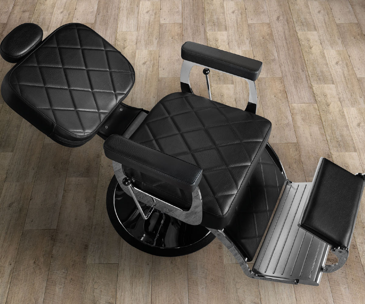 Model: Elite Plus, een verfijndere versie van de Barberchair Elite die u al kent, verfraaid met hoogwaardig stoffeerwerk en afgewerkt met elegante ruitvormige stiksels!