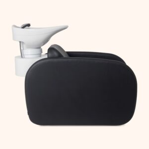 De Vela wasunit is compact en minimalistisch. Het afgeronde ontwerp is perfect voor salons met een verzorgde uitstraling. Een elektrische voetensteun is een optie. Net als een zwarte wasbak. Achterbouw mogelijk in wit of zwart.